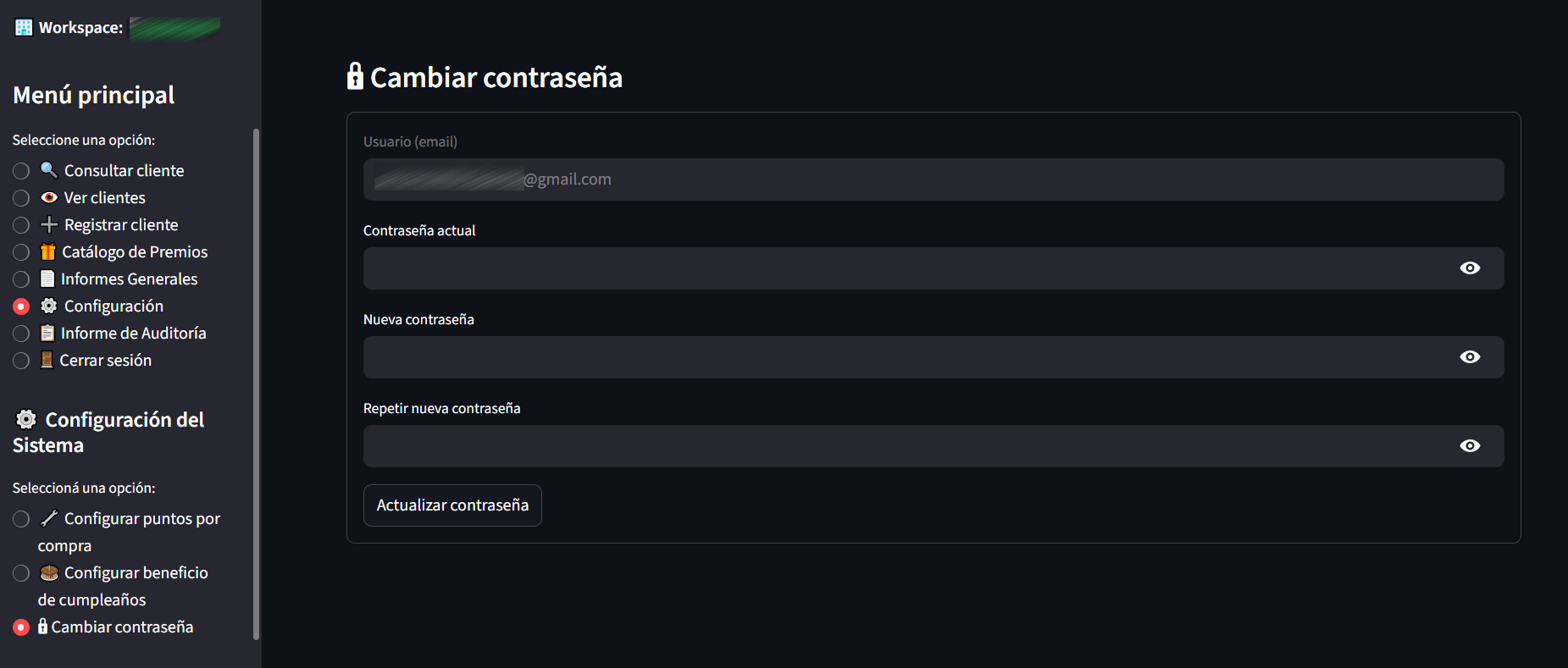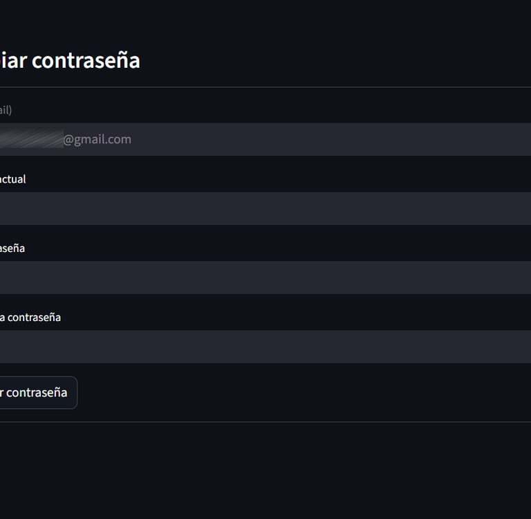 Si olvidaste la contraseña y en la pantalla principal solicitaste blanquearla, te llegará un mail con una contraseña temporal que podes ingresarla en esta sección como contraseña actual e ingresar la nueva para modificarla.