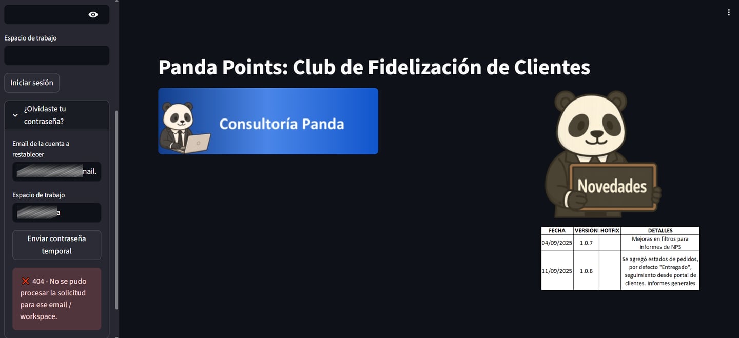 Este mensaje de error aparece cuando se intenta loguear en admin.consultoriapanda.com.ar, en la sección de "¿Olvidaste tu contraseña?"