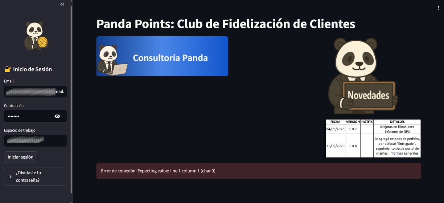 Este mensaje de error aparece cuando se intenta loguear en admin.consultoriapanda.com.ar, el espacio de trabajo ingresado es incorrecto, no existe en ninguna base de datos.