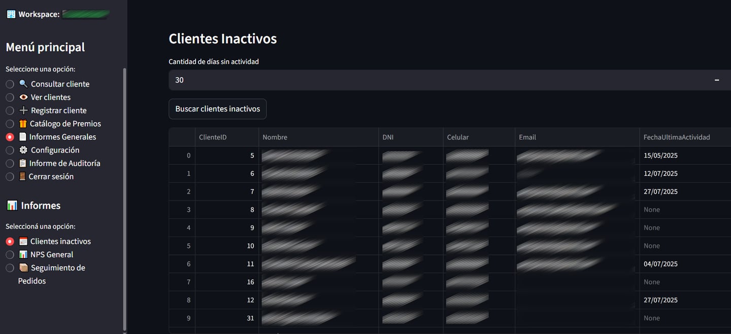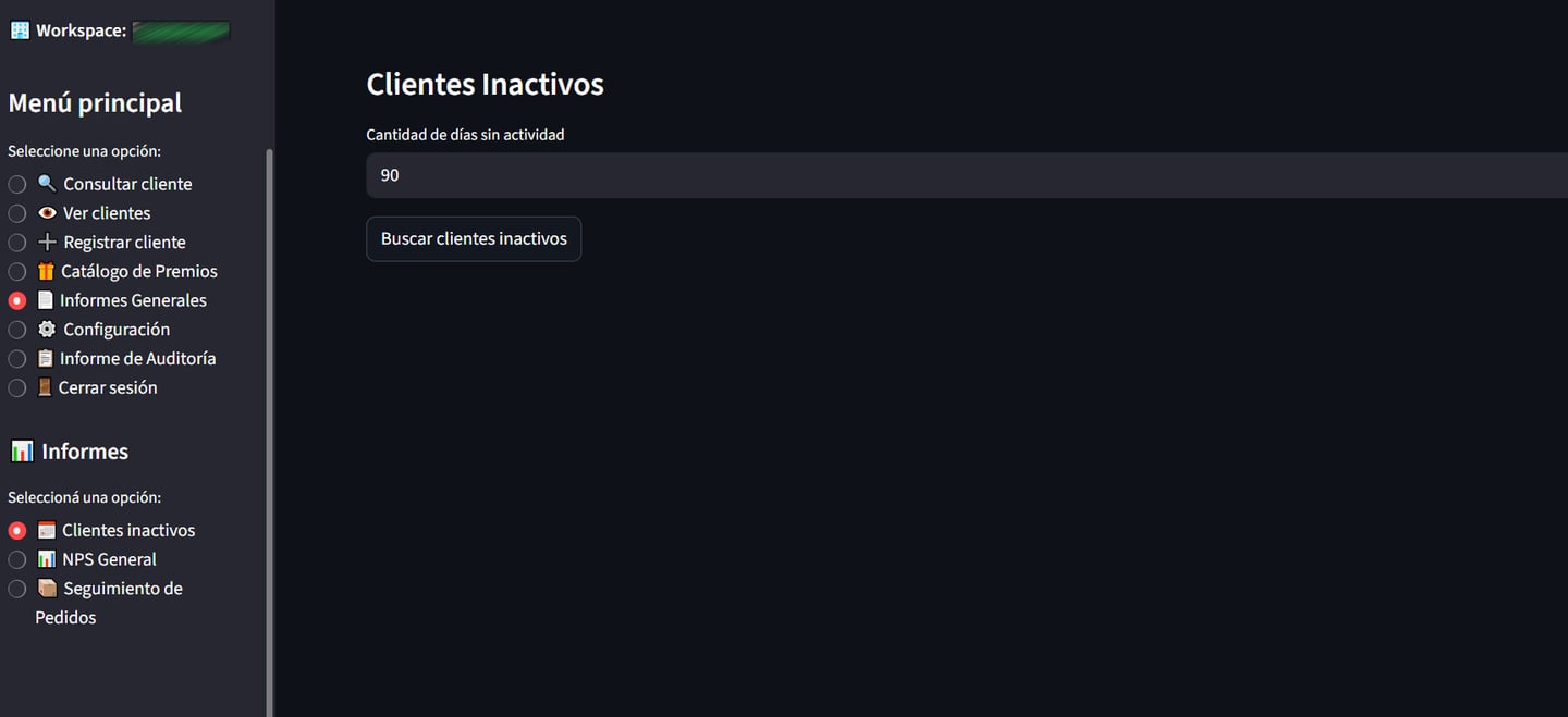 En este informe podrás indicar la cantidad de días desde hoy para atrás de clientes que están inactivos, es decir, que no tuvieron movimientos en ese periodo de tiempo indicado.