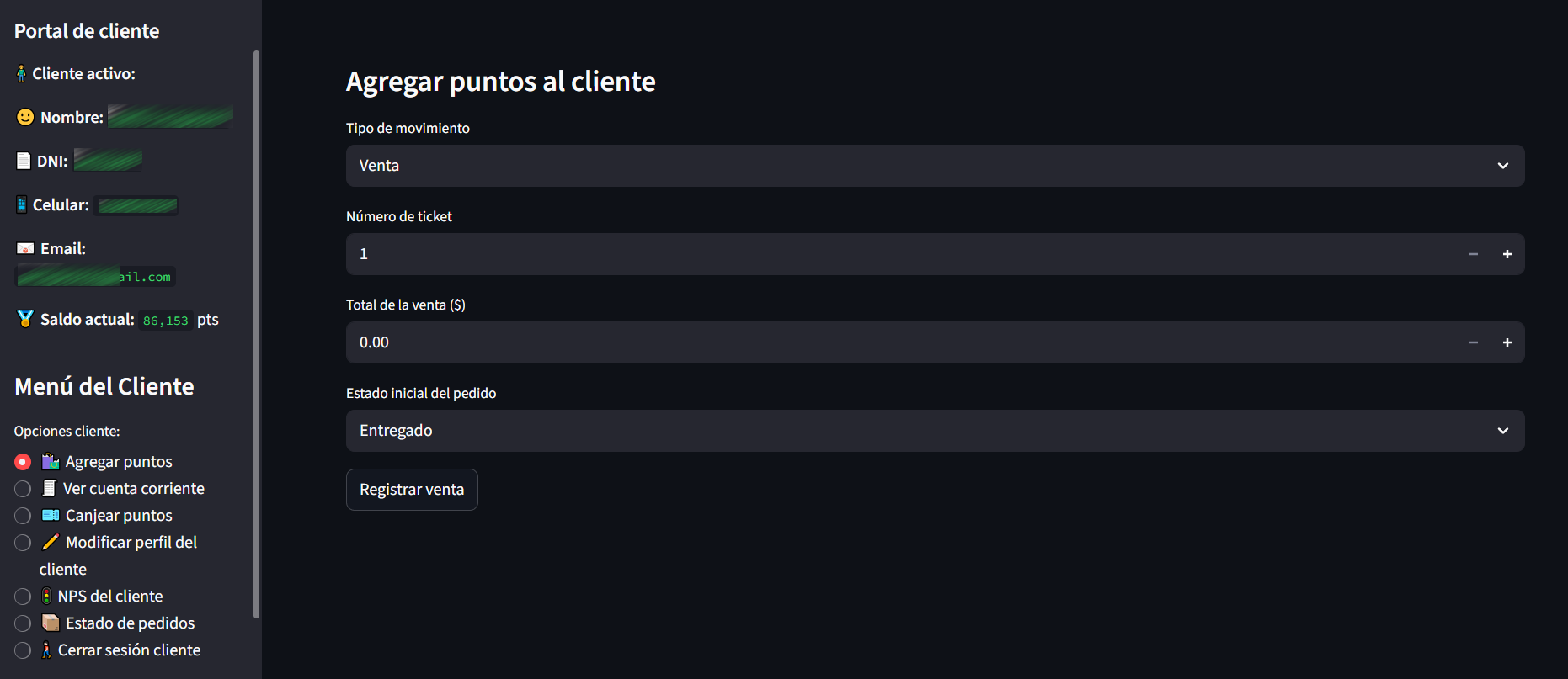 Menú Cliente: ¿Cómo agregar puntos?