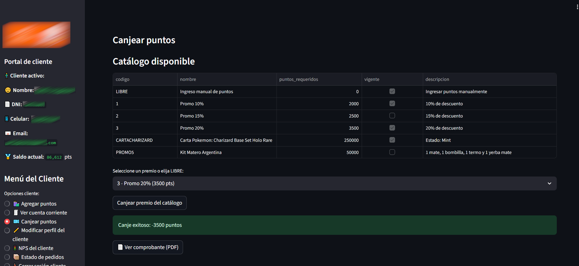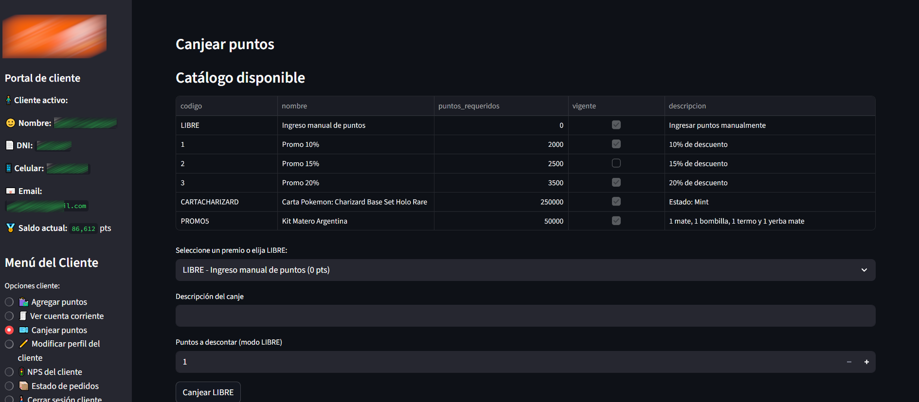 Menú Cliente: ¿Cómo puedo canjear puntos?