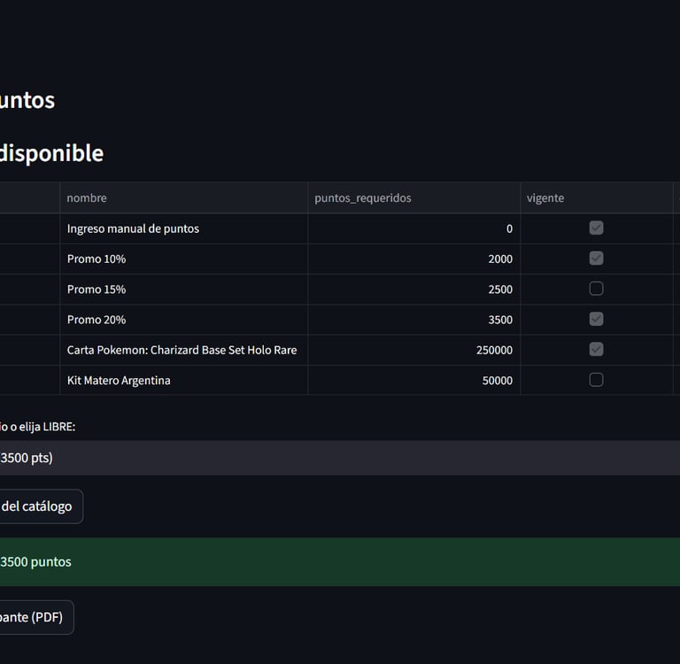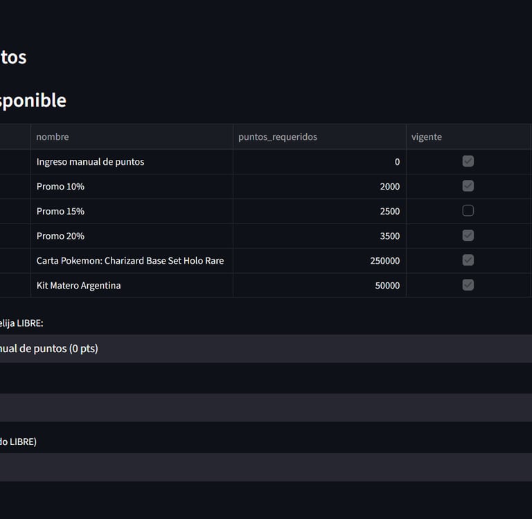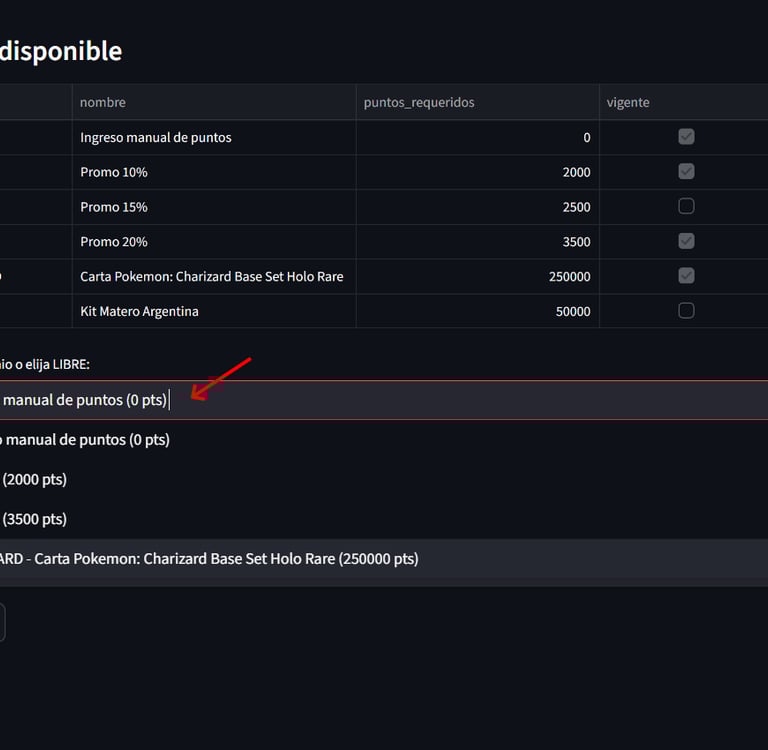 LIBRE: Permite canjear la cantidad de puntos que desee e indicar la descripción del canje. Por ejemplo: 100.000 puntos por un descuento de -$10.000, entonces en el campo descripción del canje se indicará "Descuento -$10.000" o lo que corresponda y en puntos a descontar 100.000.