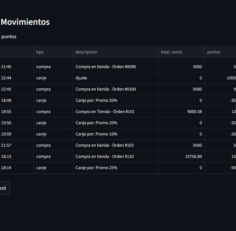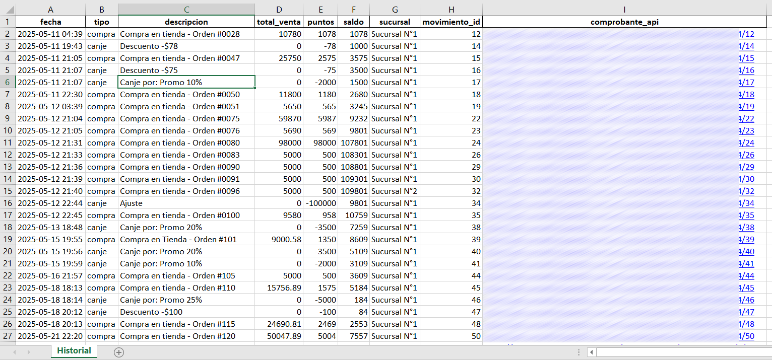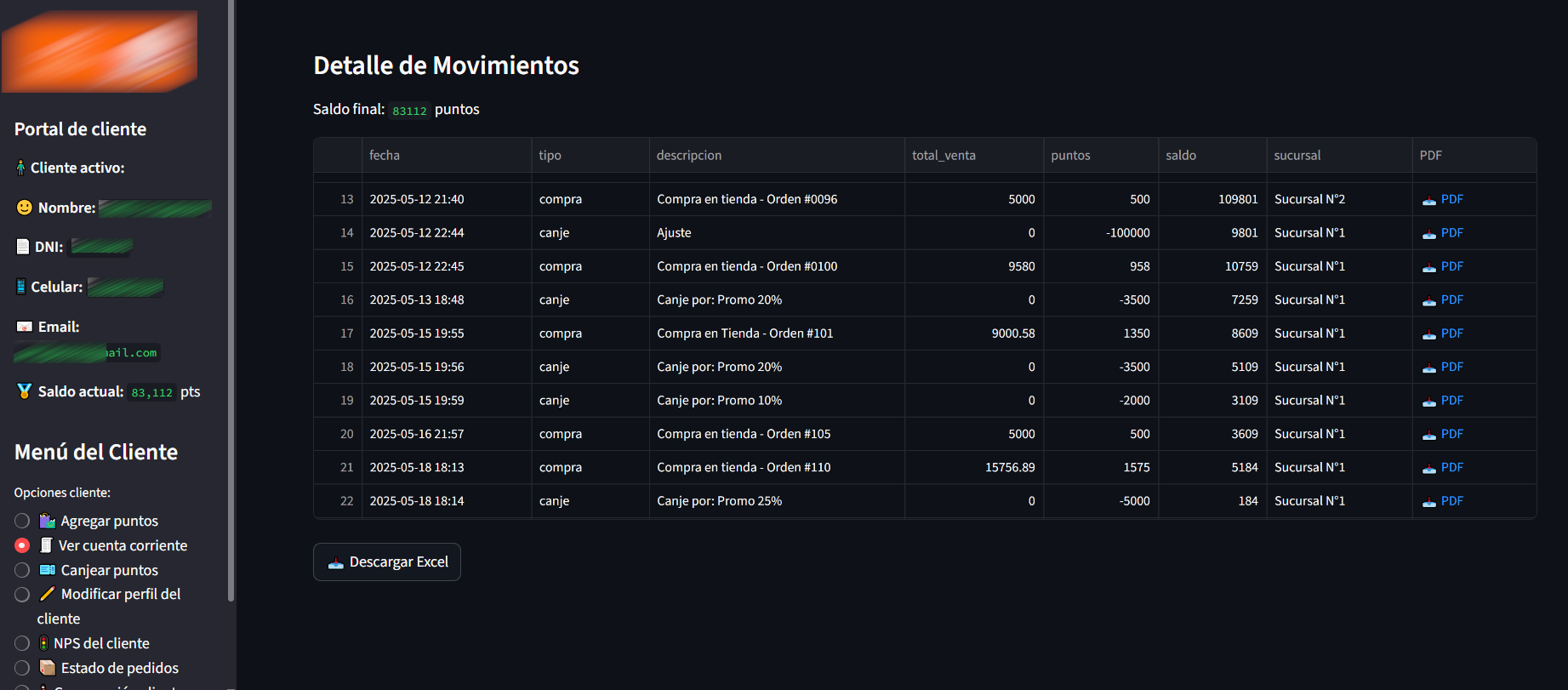 En la opción de "Ver Cuenta Corriente" se podrá visualizar el histórico de movimientos de compra y canje de mi cliente.